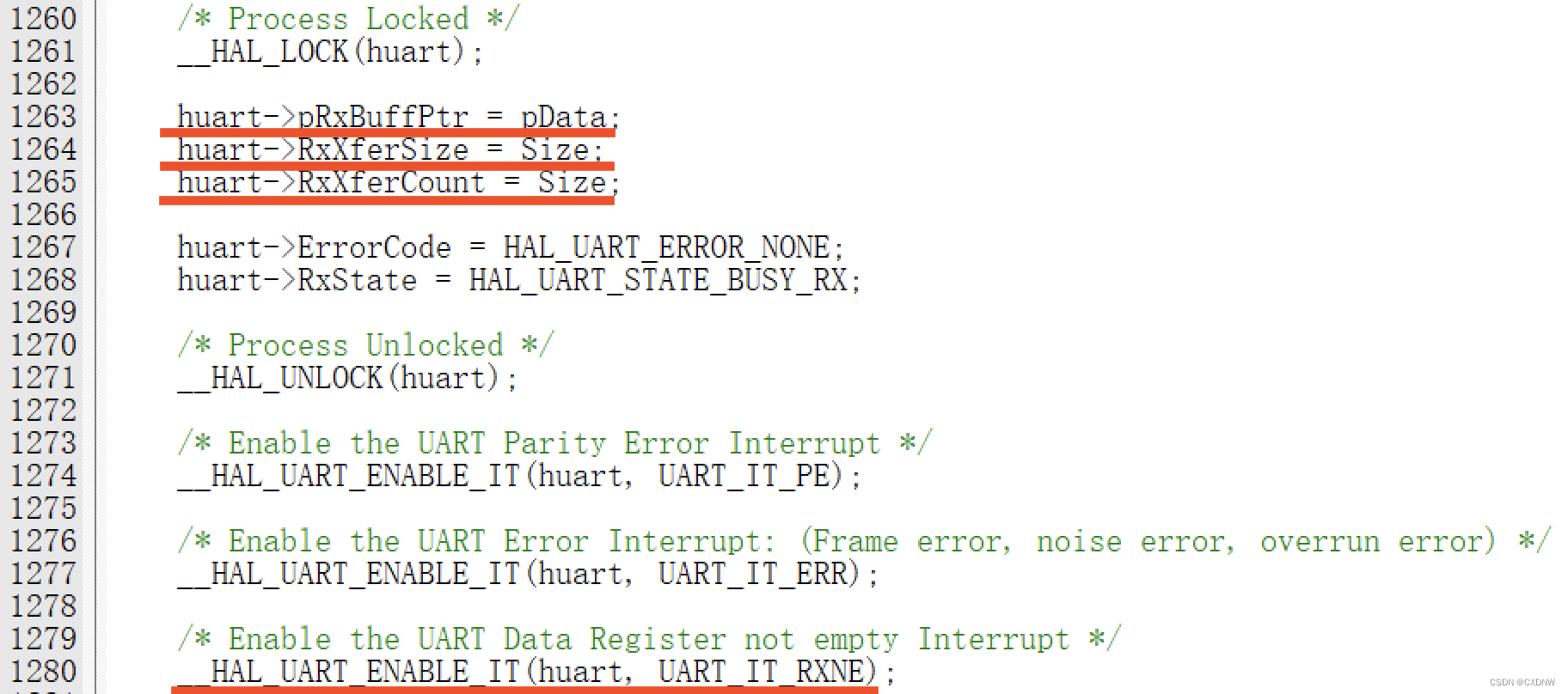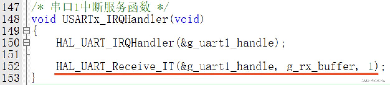 ①调用函数HAL_UART_Receive_IT(),开启接收中断,同时设置接收的缓存区以及接收的数据量。