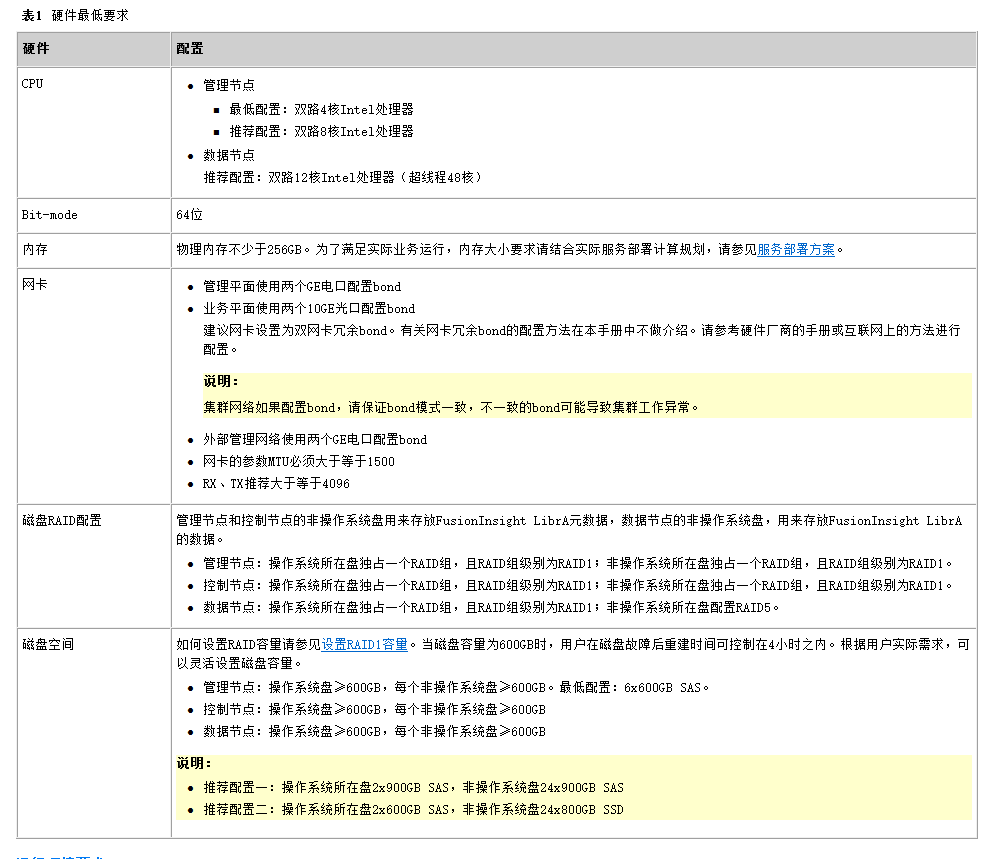 LibrA支持通用的x86服务器,企业可根据自身需求灵活选择,服务器配置要求如表1所示。