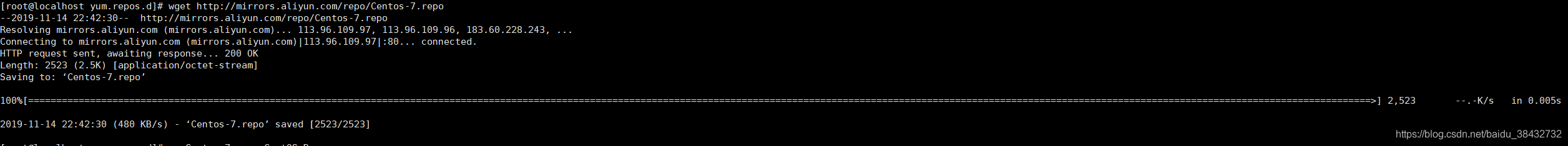 [root@localhost yum.repos.d]# wget http://mirrors.aliyun.com/repo/Centos-7.repo