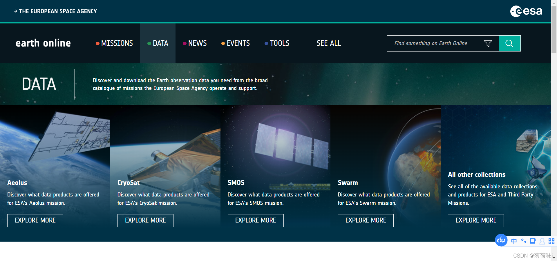 一、数据介绍是在这个博主这里学到的,可自行前往学习科学网—140731SMOS数据产品介绍和获取 - 杜延磊的博文 (sciencenet.cn)我想要详细介绍数据下载的过程首先进入官网,进入DATA选项卡Home - Earth Online选择自己要下载的产品,我这里选择SMOS,由于本人需求的是土壤水分数据,因此选择 NRT Data 产品点击此处右侧DOWNLOAD点击红框中数据集处选择所
