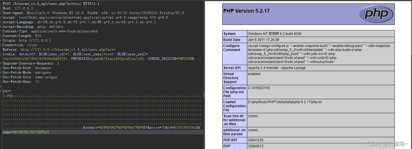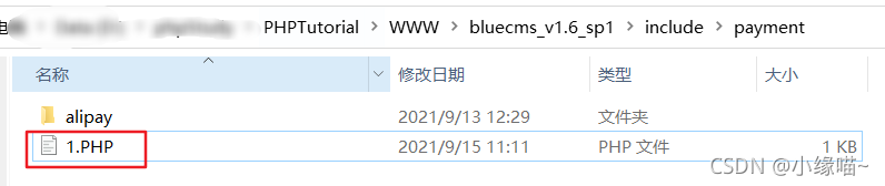 先测试如何构建payload才能成功,我们现在include/payment/下新建一个1.php文件内容为phpinfo