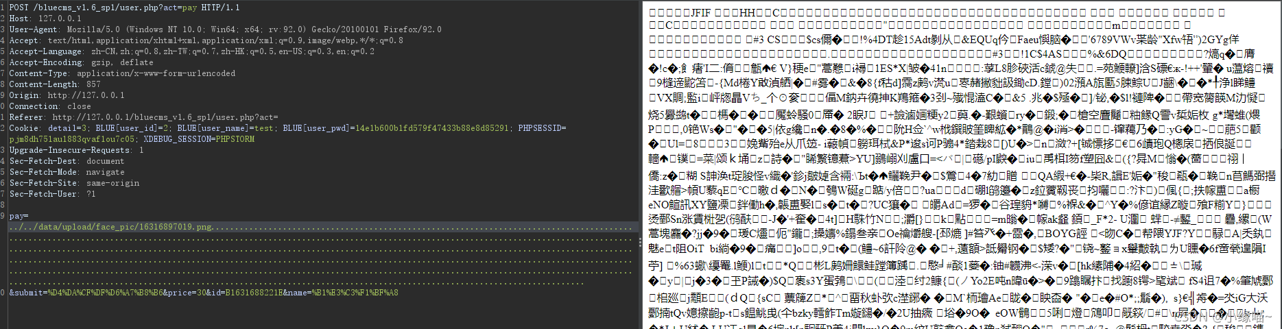 点击在线支付Bp截取数据,发到repeater模块,构造exp。
