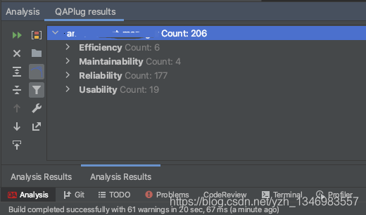 IDEA的代码检查插件:QAPlug,包含了QAPlug-Checkstyle、QAPlug-FindBugs、QAPlug-PMD 3个插件的功能,1键运行3个同时汇总整合,非常方便。与sonar平台的功能类似,如果公司没有搭建sonarqube平台的话,本地使用这个最佳。FindBugs基于 bug patterns 缺陷模式概念,查找字节码文件中的潜在bug。是一个静态分析工具,将字节码与一