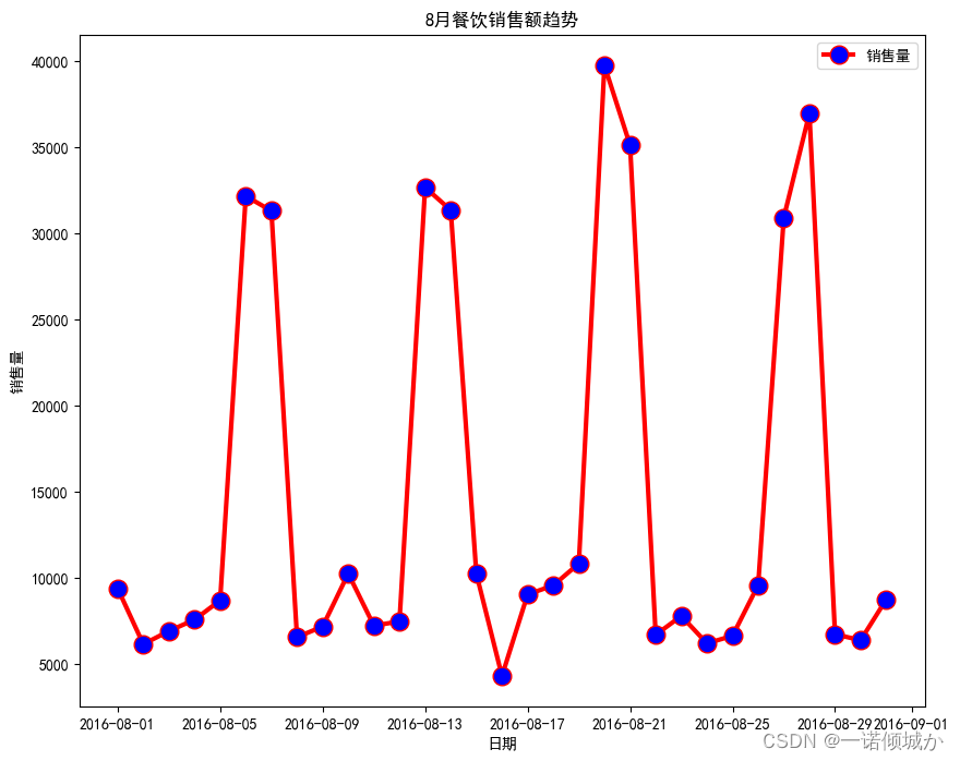 (2) 计算 8 月餐饮的每日销售额,并绘制折线图分析 8 月餐饮销售额趋势。