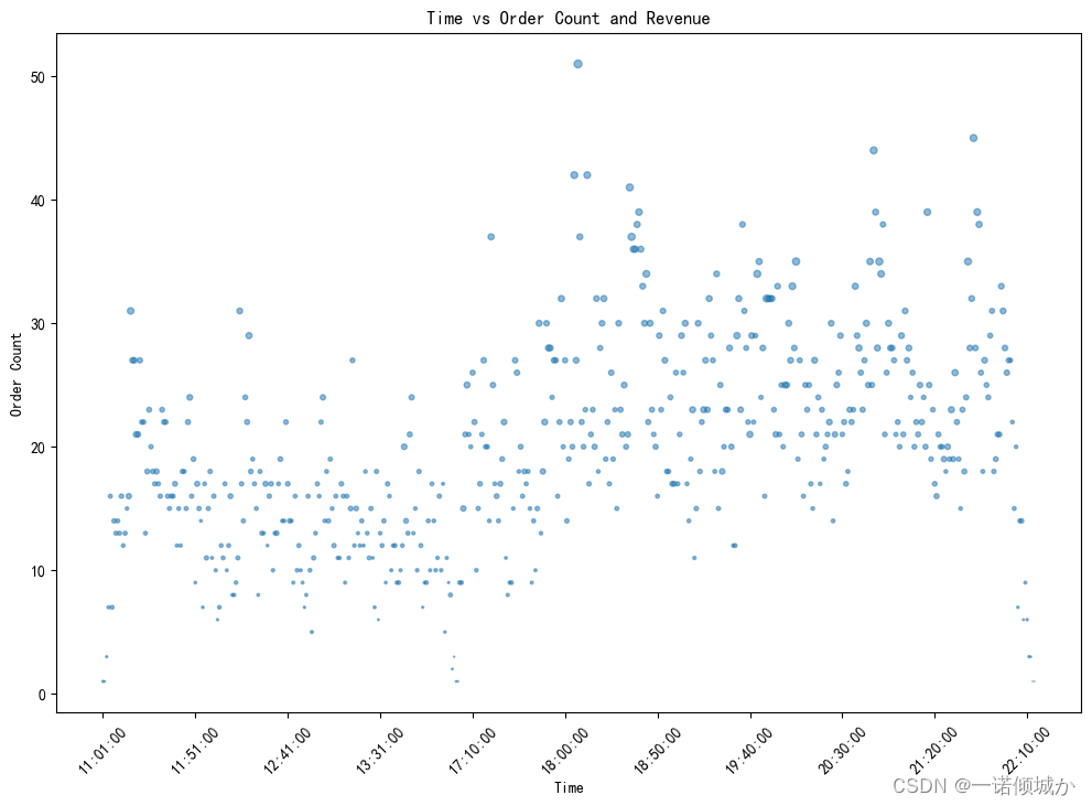 (5) 绘制气泡图分析时间,订单量,销售额关系。