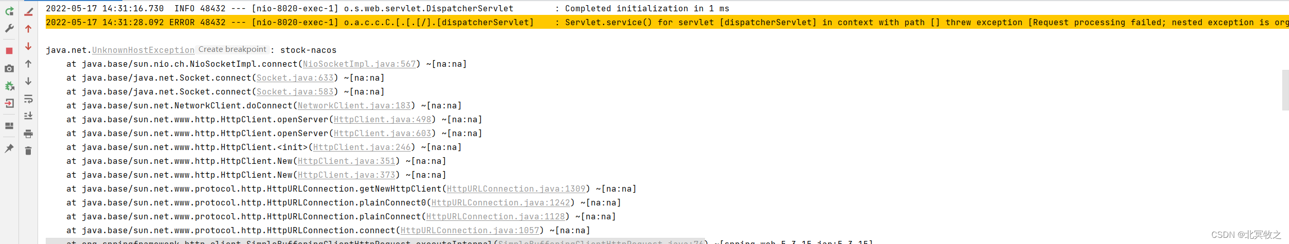 目录1. 服务消费者启动类1.1. 服务消费者 controller2. 服务提供者启动类2.1. 服务提供者 controller3. 服务报错4. nacos 信息5. 解决思路5.1. 配置、注解检查5.2. 其他方面原因排查6. 解决方案7. 参考连接在 SpringBoot 项目中调用另外的服务报错:重点是这一句:java.net.UnknownHostException: stock-