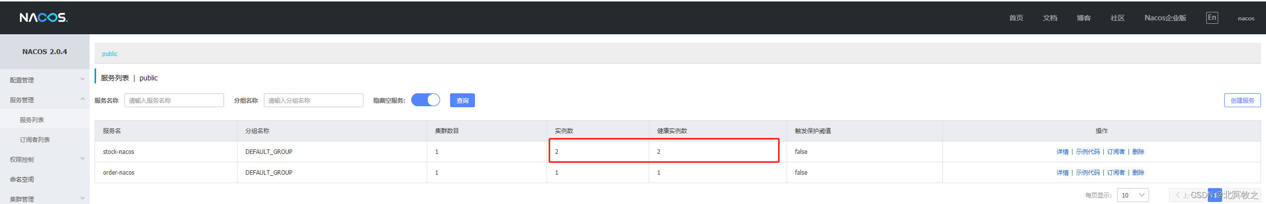 我们 nacos 配置完成,1个服务消费者实例和2个服务提供者实例均已注册到 nacos 中。