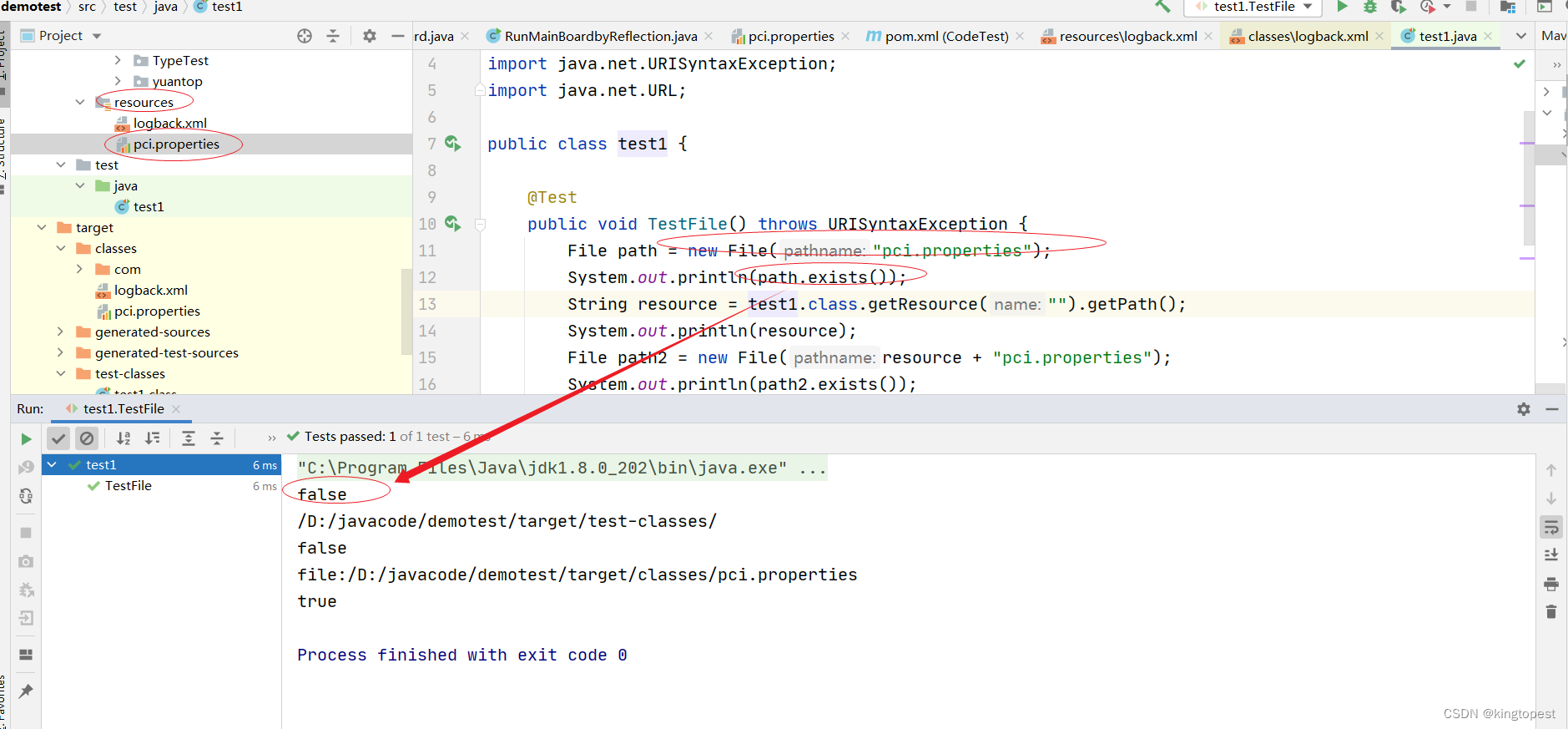 可以看到resources目录已经在idea中标记成了资源目录resources root,而且target/classes目录下也编译出了resources目录下的pci.properties文件,换句话说:java在编译时是读取到了resources下的文件的。