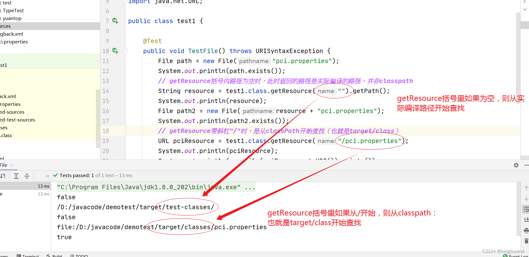 因为上面的是单元测试,此时getResource留空,则从target/test-classes开始查找