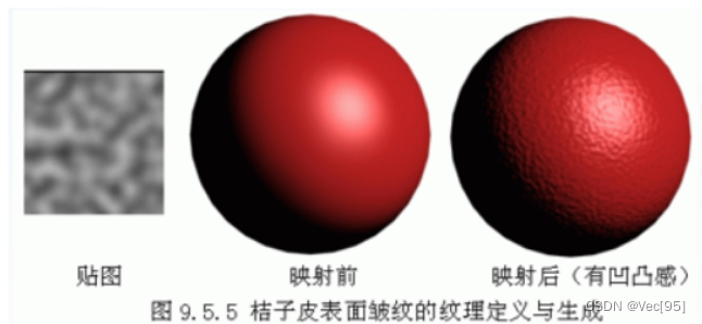 景物表面光亮度是法向量的函数:法向量的扰动导致表面光亮度的突变,产生表面凹凸不平的真实效果。