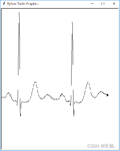turtle.goto(t-300,int(ecg[t]))