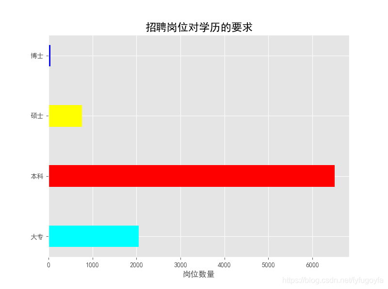 (3) 查看招聘岗位对学历的要求的情况,水平柱形图可视化。