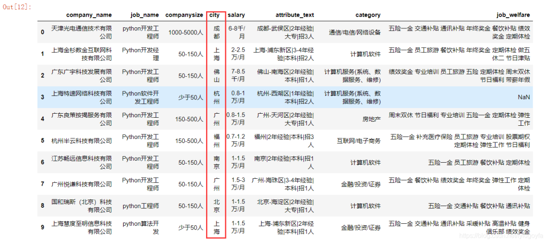 datas = pd.DataFrame({'company_name': company_name, 'job_name': job_name, 'companysize': companysize, 'city': city, 'salary': salary, 'attribute_text': attribute_text, 'category': category, 'job_welfare': job_welfare})