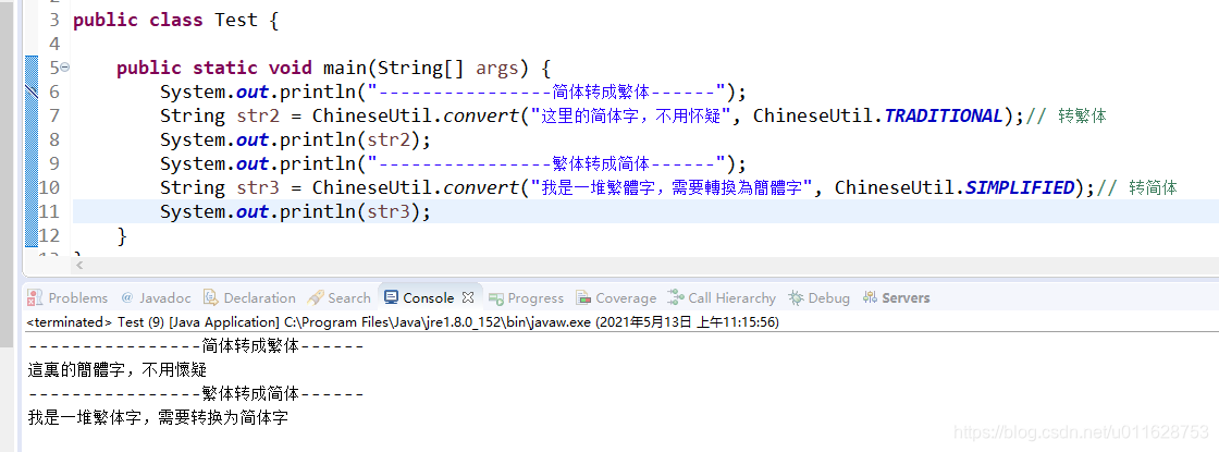 简繁体互相转换,由于maven仓库里ZHConverter.jar并没有带字库,不能实现简繁体互转换,这里特别将互转代码copy出来,并附带上字典。<!-- https://mvnrepository.com/artifact/com.spreada/ZHConverter --><dependency><groupId>com.spreada</grou