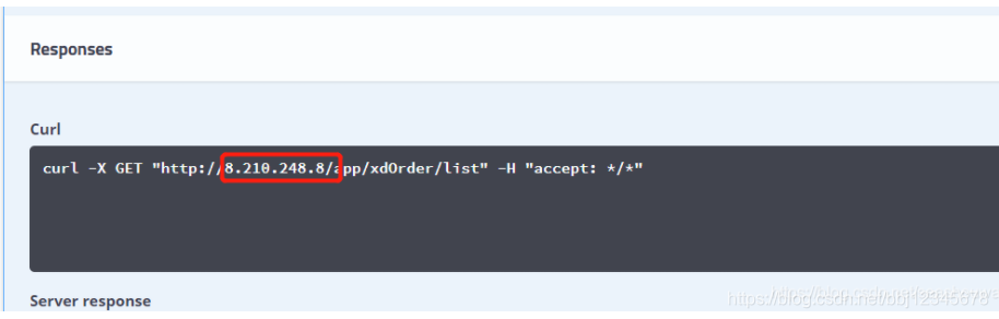 通过服务器访问swagger接口地址可以看到,请求缺少ip地址对应的端口导致不知道访问那个服务。