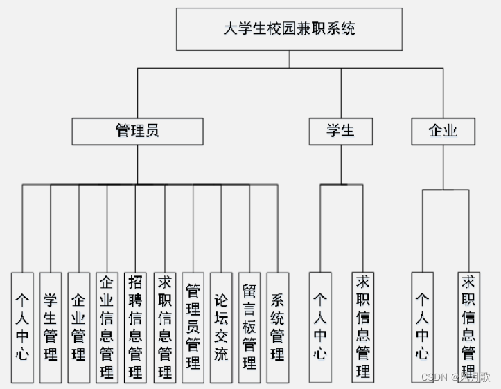 企业:个人中心、求职信息管理,学生;个人中心、求职信息管理。