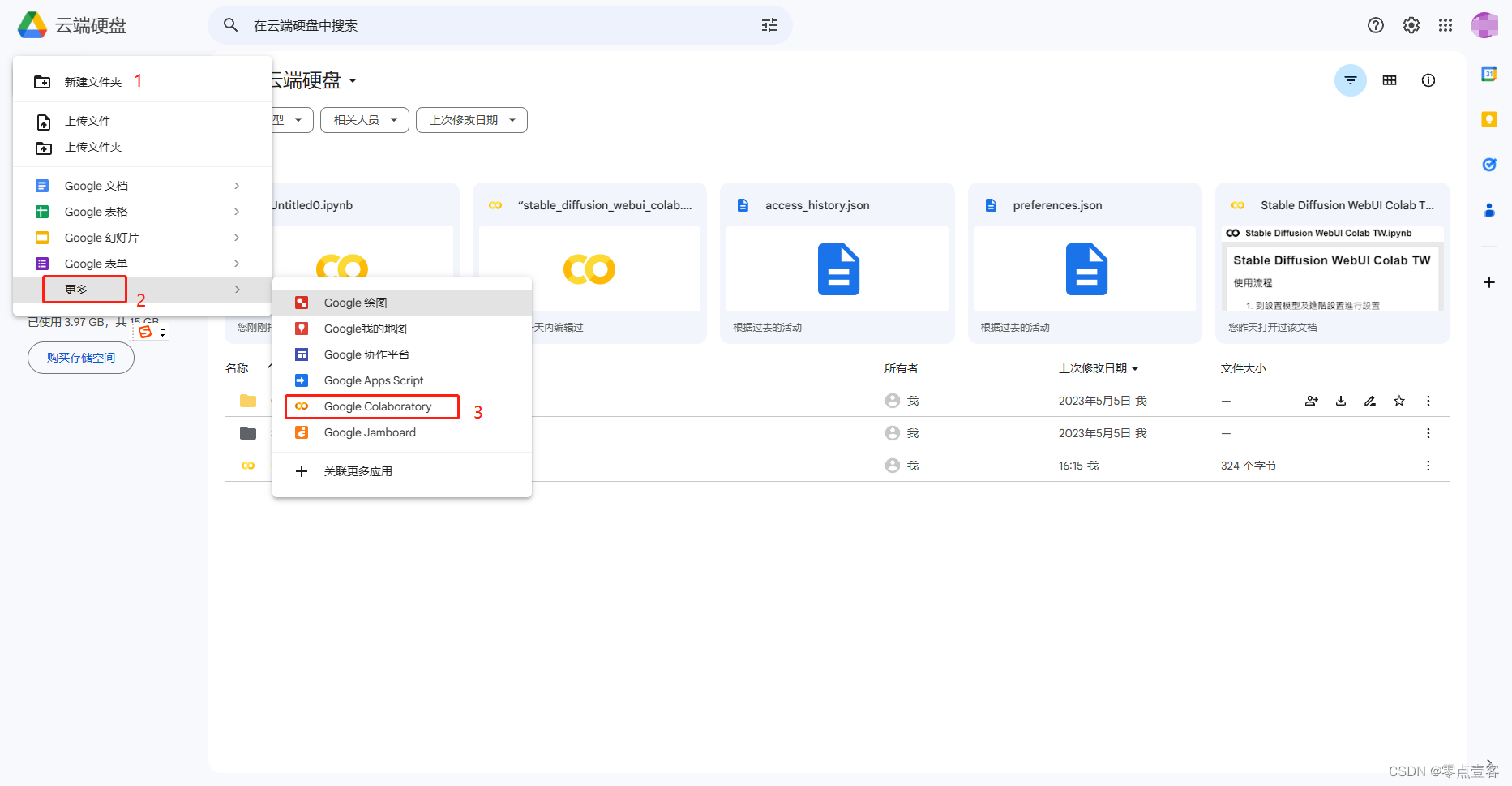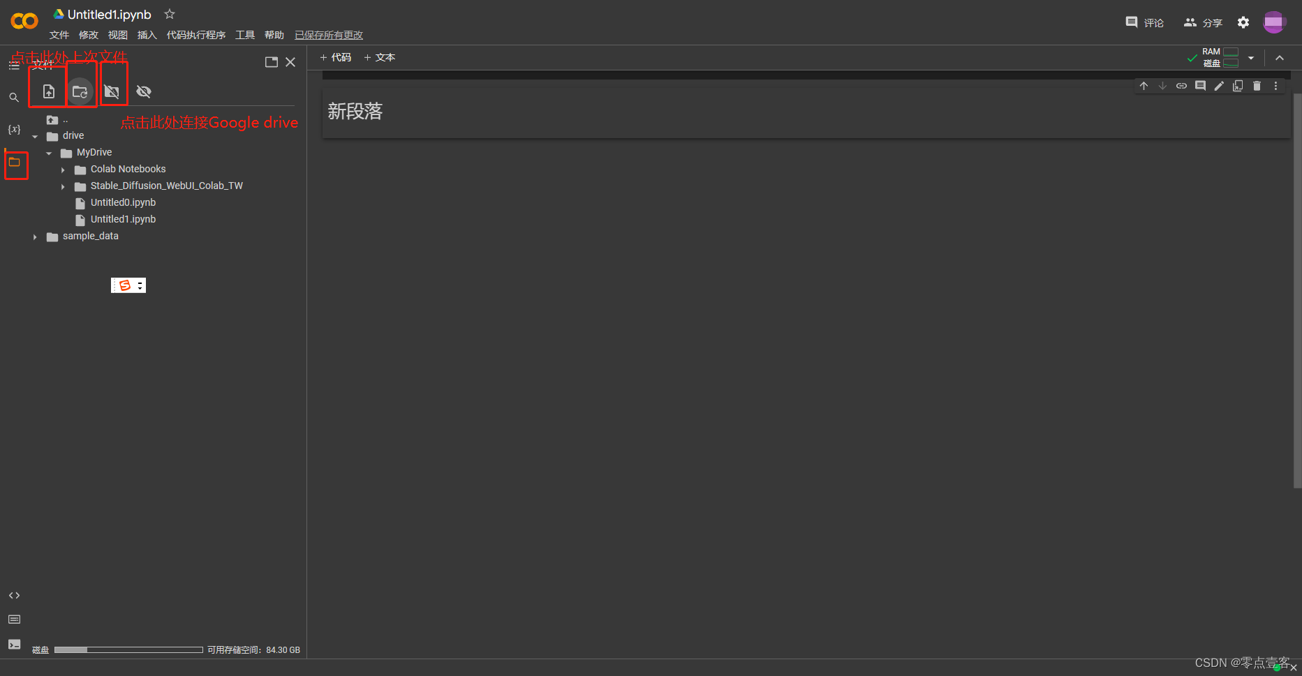 基本操作4:Goolge colab 与Google硬盘连接- 注意:你也可以利用代码来挂载Google硬盘