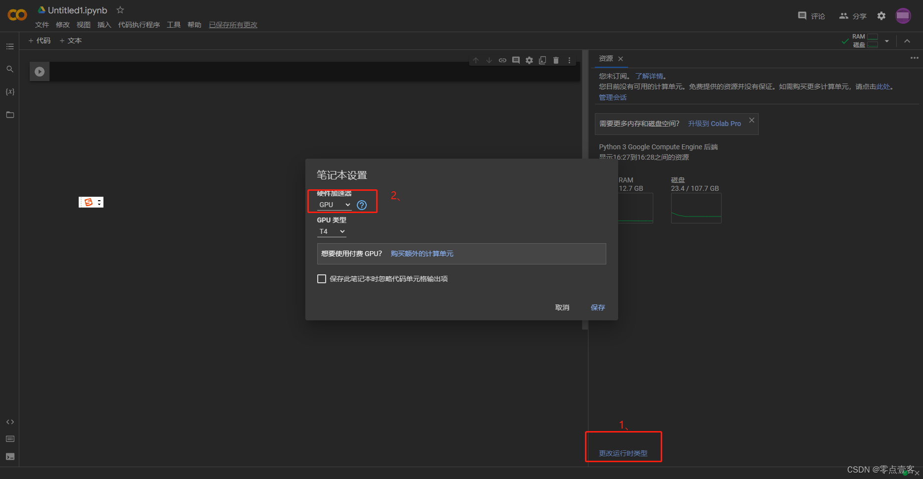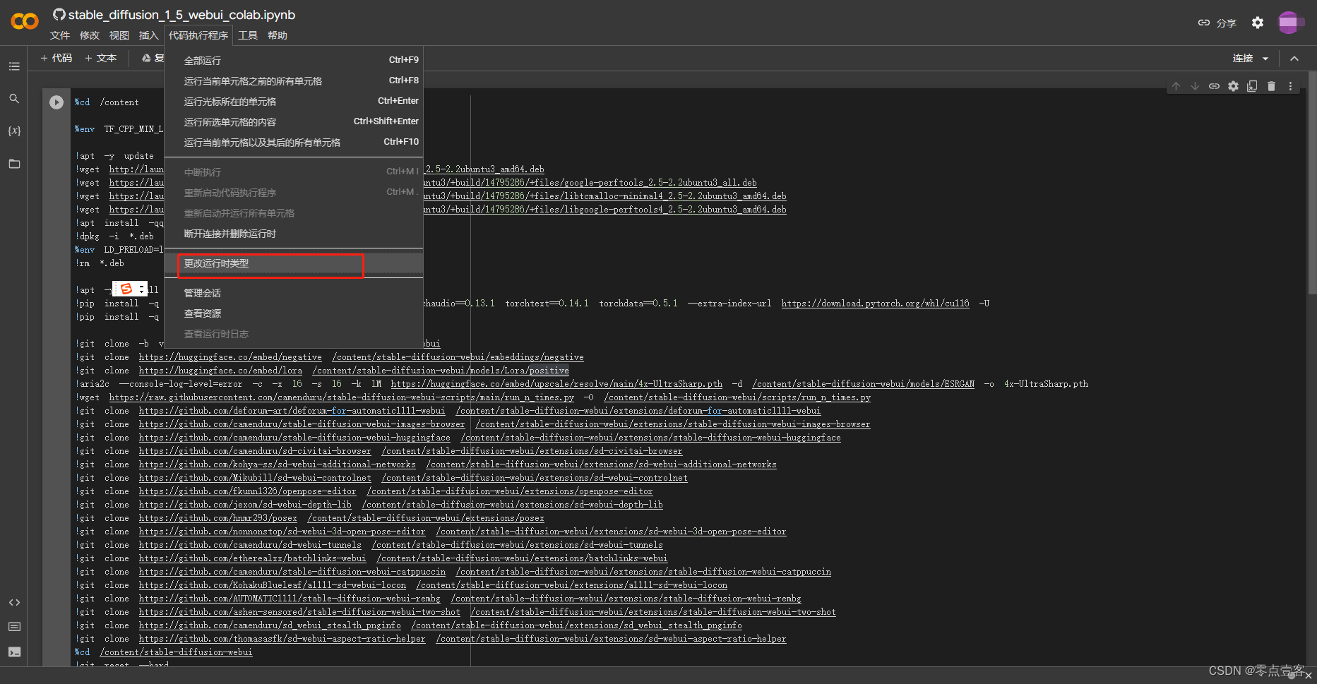 登陆了先别急,要在代码执行程序里更改运行时类型,这样才能跑stable diffusion web ui