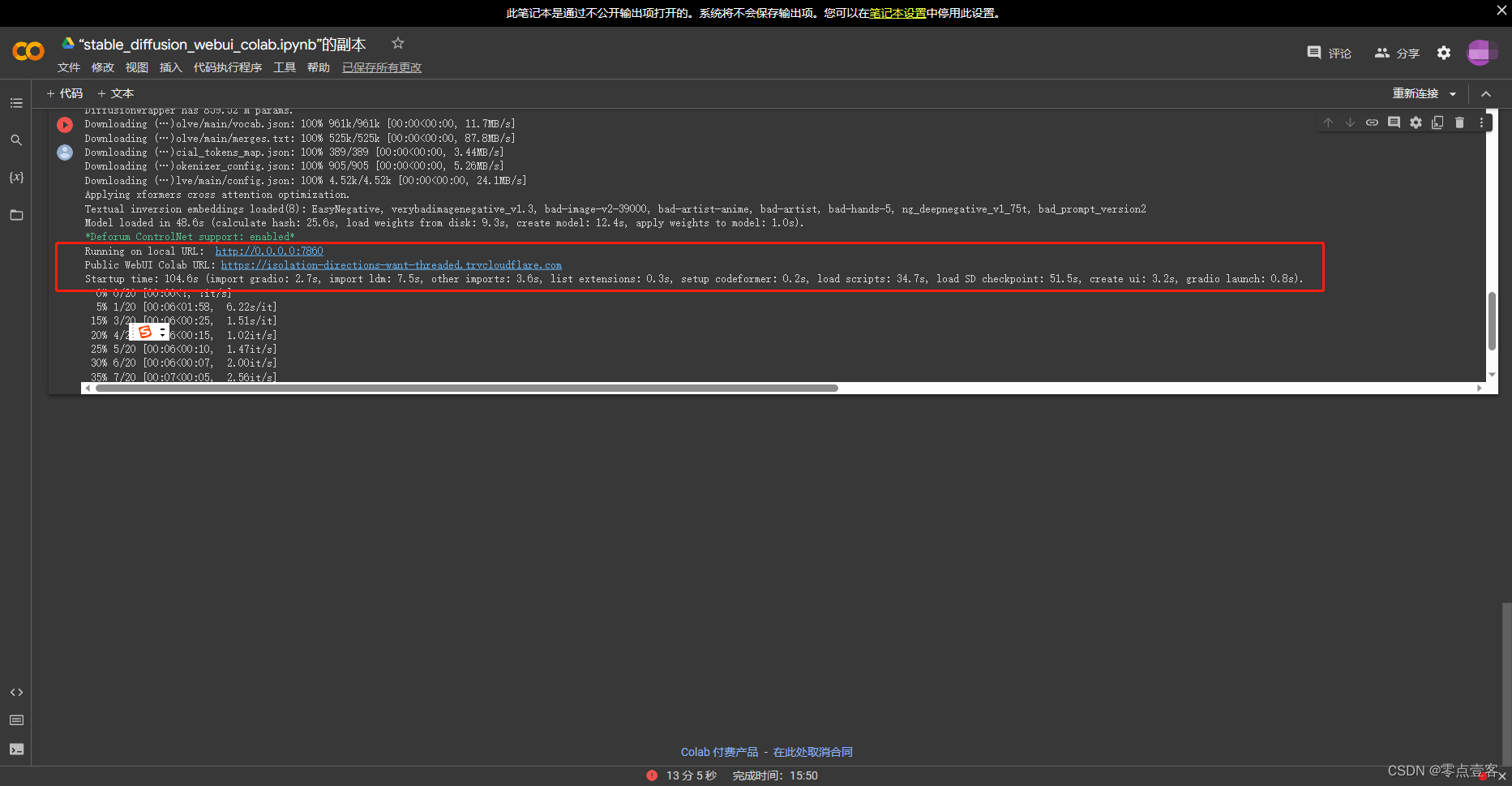 信息填写完毕后,点击4th - Download Model,后台就会下载模型,可以切回到colab页面里看下载进度。