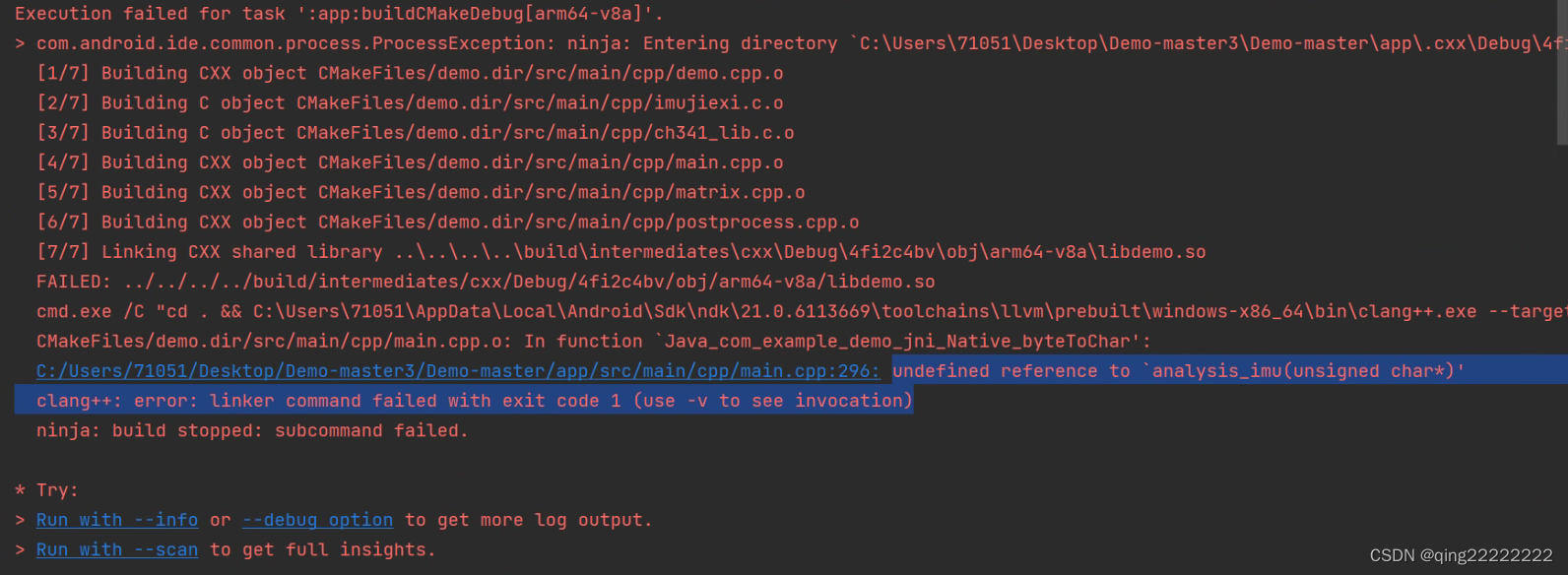 在使用android studio NDK 调用c/c++函数的过程中,编译时出现以下报错: