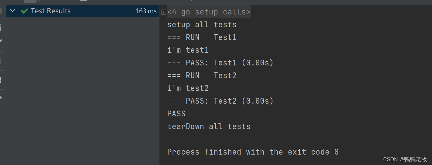 一、TestMain测试package TestMainimport ("fmt""os""testing")func setup(){fmt.Println("setup all tests")}func tearDown(){fmt.Println("tearDown all tests")}func Test1(t *testing.T){fmt.Println("i'm test1")}f
