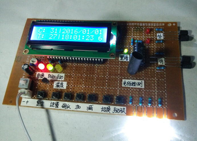 系统三个按键分别是:系统复位键、设置键、加键、减键。