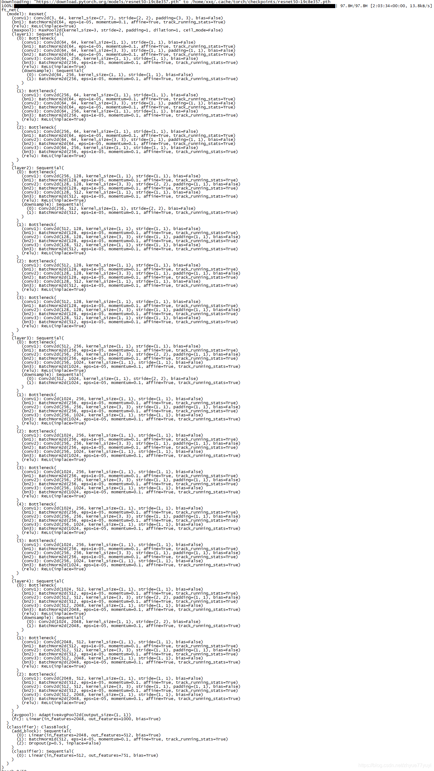在pytorch里,我们可以通过两行代码来引入预训练模型resnet50。