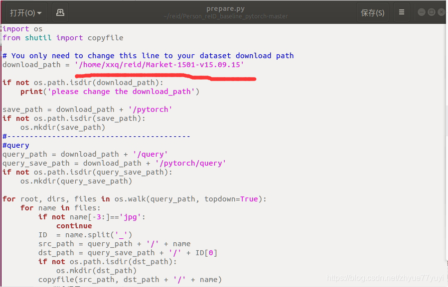 打开刚刚下载的代码prepare.py。 将第五行的地址改为你本地的地址。
