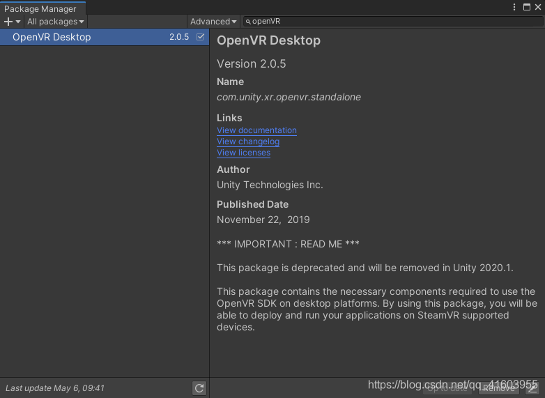 若是源程序在Unity编辑器里只显示VRSimulator不显示SteamVR ,对应方法二:打开Window——Package Manager,下载安装OpenVR;