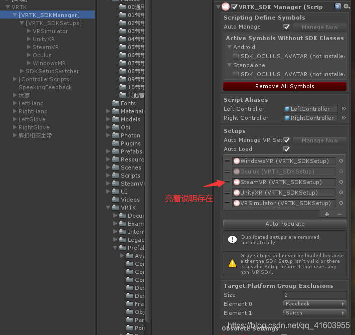 2.其次要保证我们的[VRTK_SDKManager]设置是正确的;