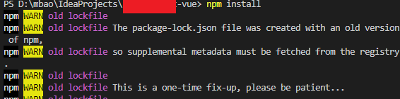 npm WARN old lockfile。这应该是因为node的版本问题。我现在运行的vue项目是很久之前的了,那会对应的是node10的。现在的版本已经是node18的。