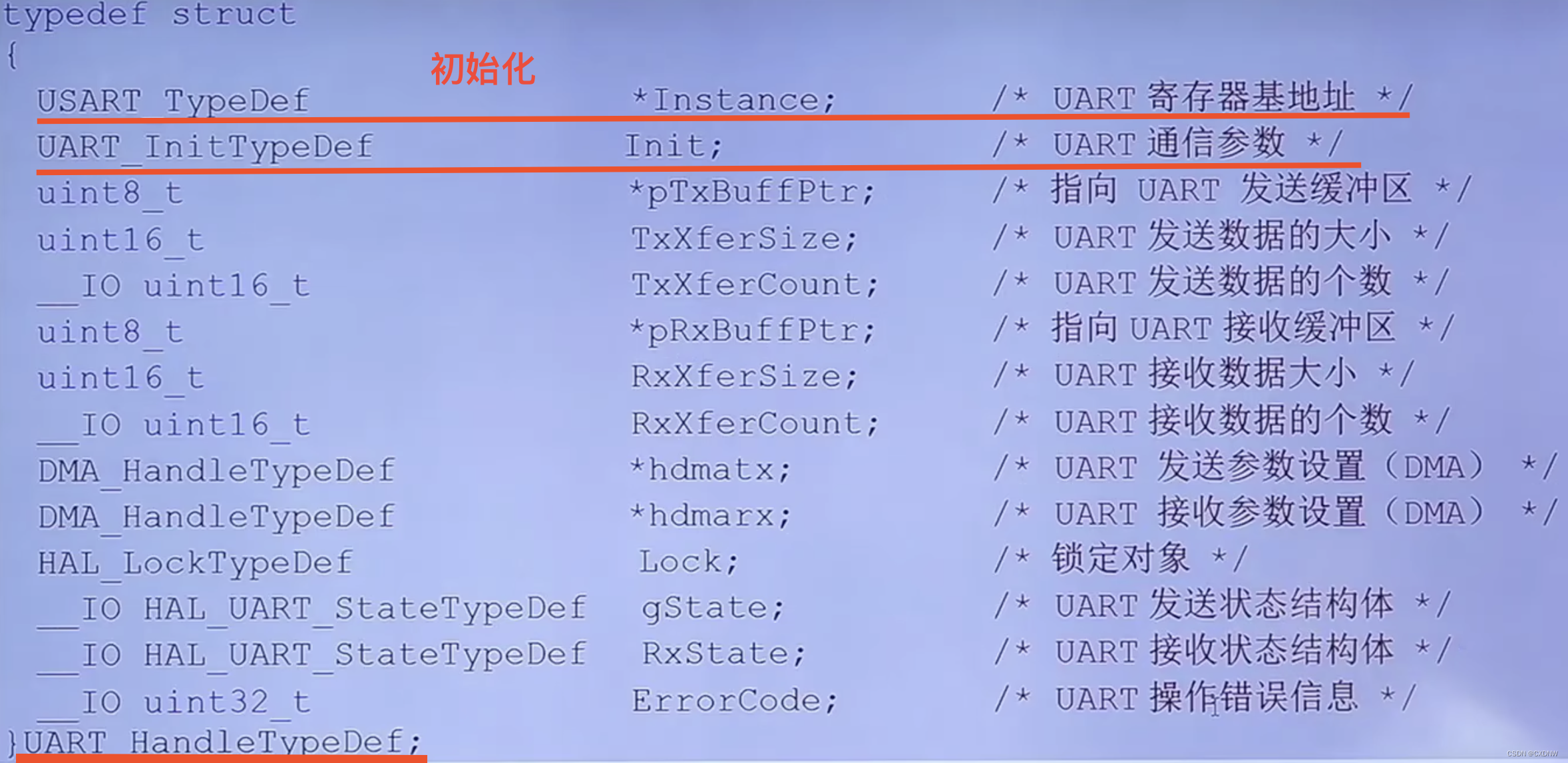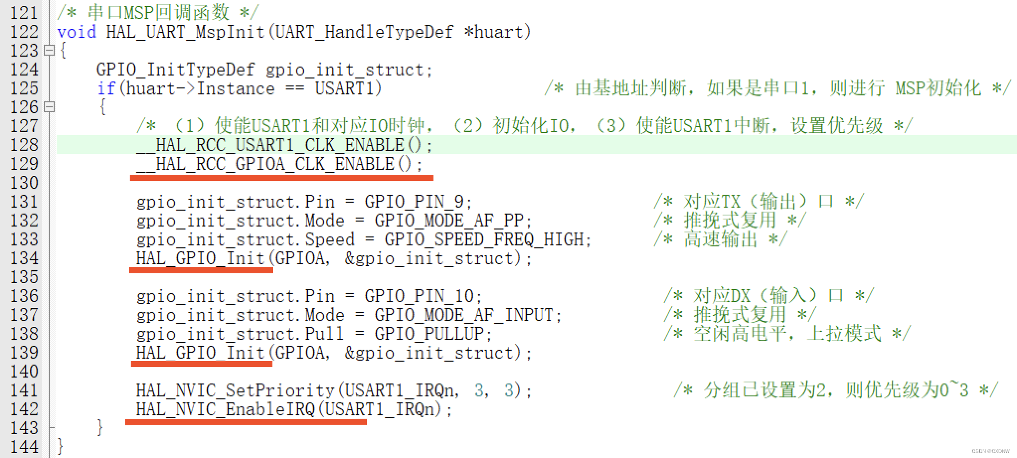 (2)串口底层初始化:重定义HAL_UART_MspInit() ( 用于配置GPIO、NVIC、CLOCK等)