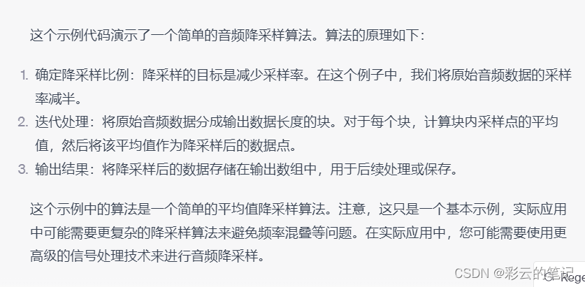 int outputSize = inputSize / 2; // 降低采样率为原来的一半