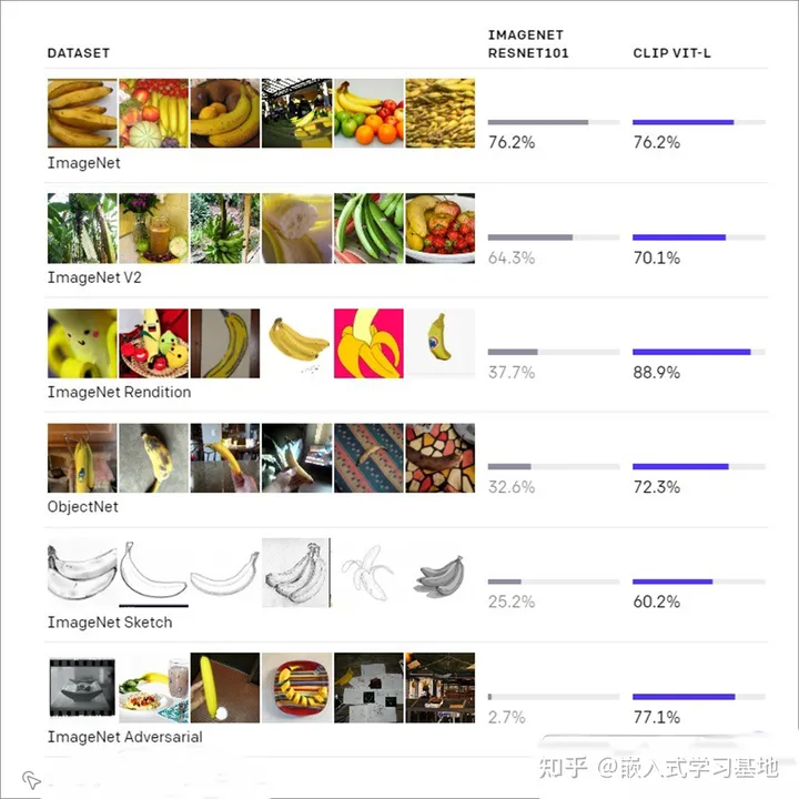 CLIP 是 OpenAI 开发的一种大型预训练语言模型,将输入的文本映射到一个连续的向量空间,并通过计算两个文本之间的距离来进行文本分类和相似度计算。与传统的语言模型不同,CLIP可以通过学习数据库中的大量文本数据来实现端到端的文本分类,而不需要任何人工标注。因此,它可以用于许多不同的文本分类任务,包括情感分析、知识图谱构建和图像标注。下图表明 CLIP 极大地改进了图像分类的结果!