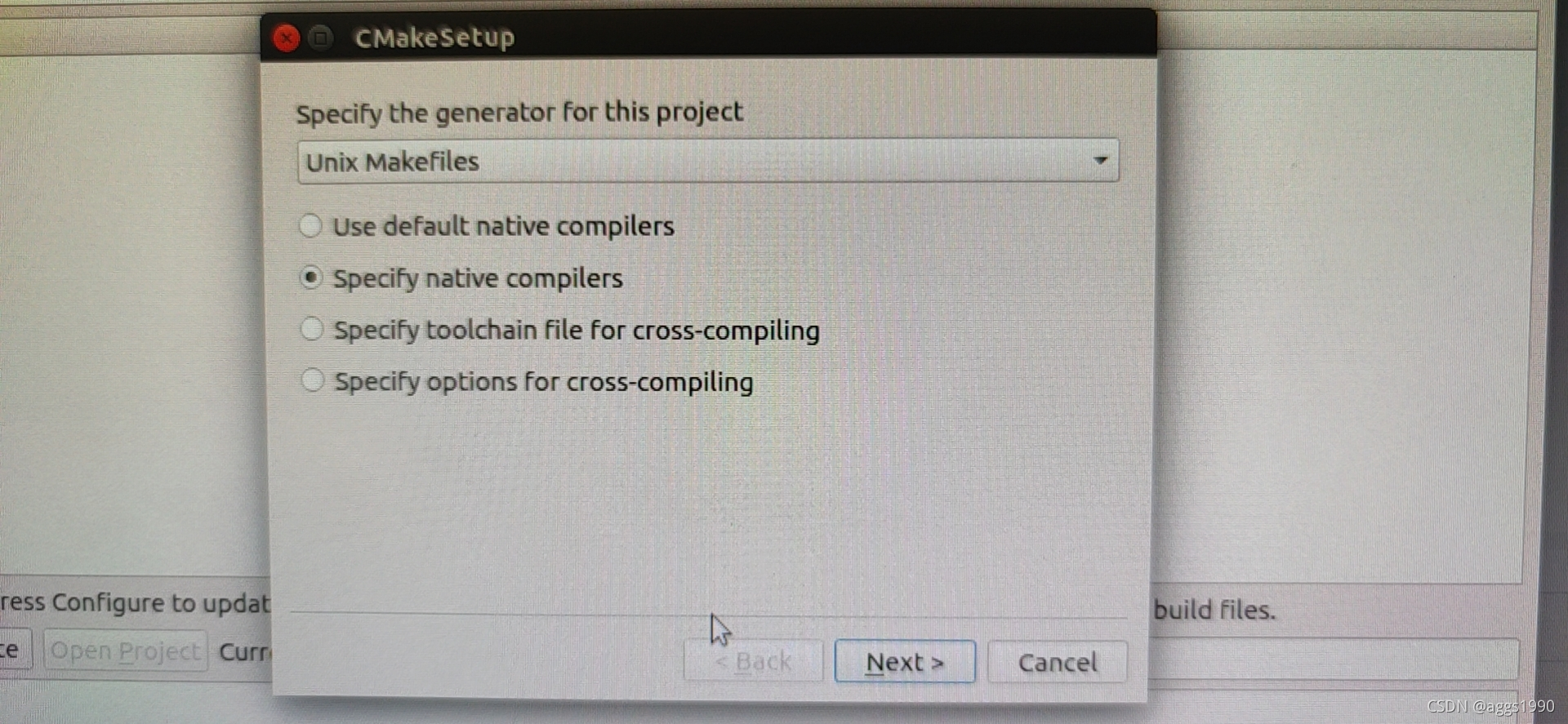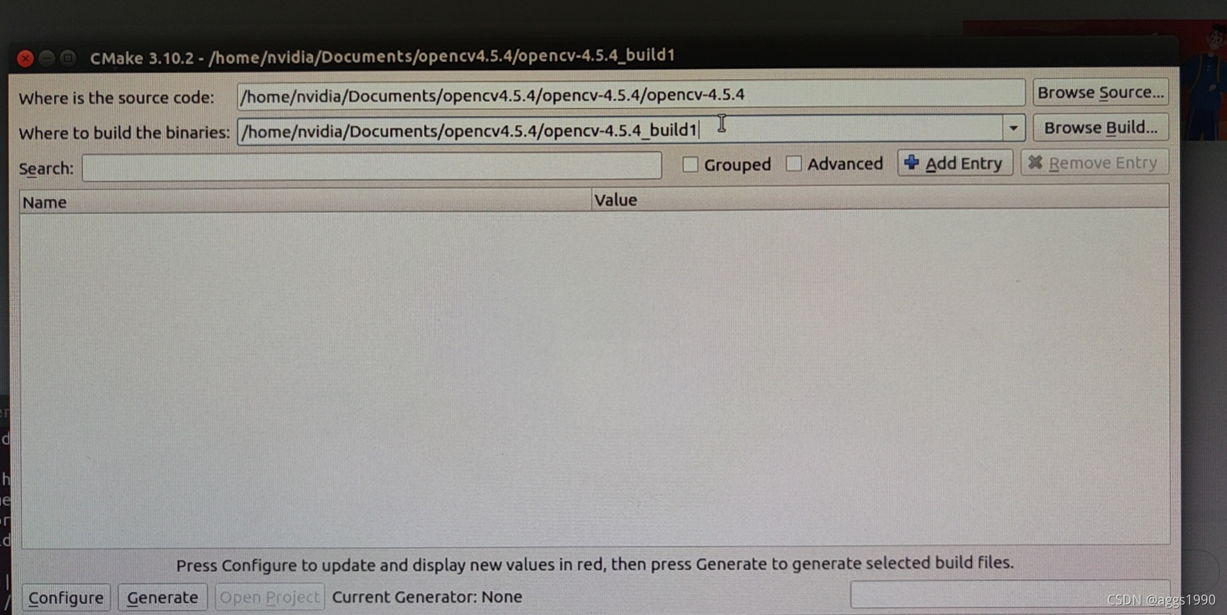 在终端中输入cmake-gui