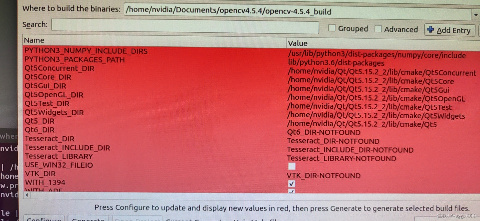 再次点击configure,此时应该不会有红色的文字了(若存在,请自主解决)