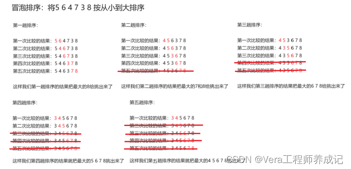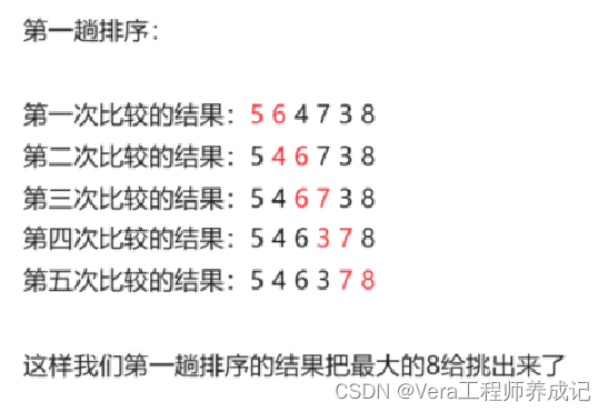 提示:比如说用冒泡排序将5 6 4 7 3 8 按从小到大排序