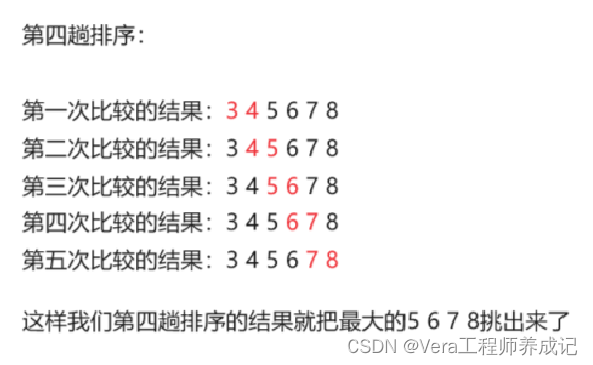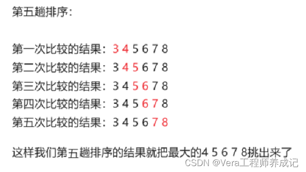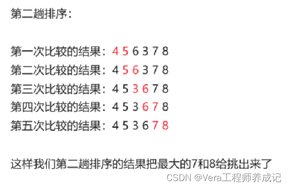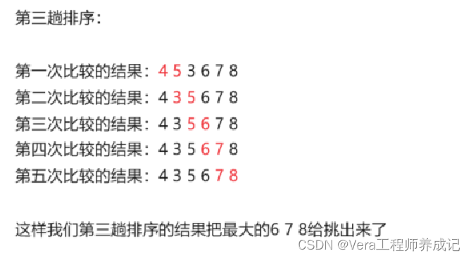 但是,我们为了保证程序的效率,当我们挑出来最大的几个数后,下一趟循环我们就没必要再进行比较后面的了。