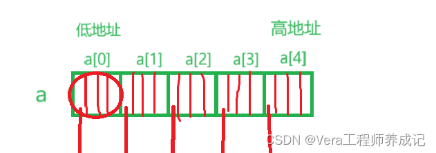 记住:数组元素的地址是从低地址到高地址,也就是说a[0]存放在低地址,a[4]存放在高地址。