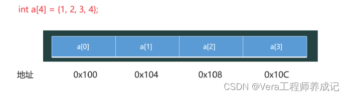 注意:每个字节有一个地址,每个数组元素的地址是它的首字节的地址