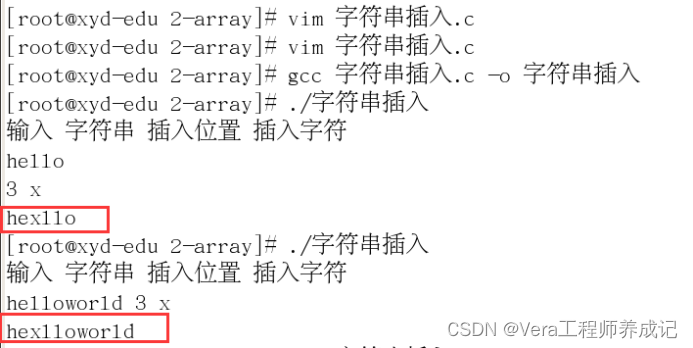 问:字符数组中在指定位置插入字符;(输入hello 3 x 输出hexllo)