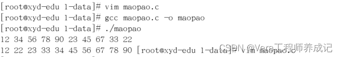 像上面这种一个工程目录下有多个.c文件的话,我们可以放在一起编译。“gcc 文件名1 文件名2 -o main”就是编译文件1和文件2,编译的结果放在main文件中。