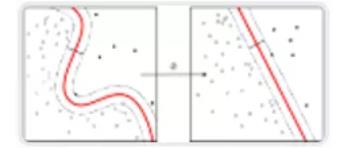SVM 模型将训练事例表示为空间中的点,它们被映射到一幅图中,由一条明确的、尽可能宽的间隔分开以区分两个类别。