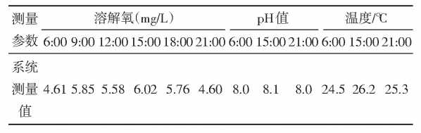 为了测试该系统运行时的准确性与稳定性,2019年7月开始在广东省某淡水鱼塘里进行实地检测。测试鱼塘面积为0.1hm2,鱼塘平均深度达到2.7m,该鱼塘采取加州鲈与鲫鱼混养的方式,养殖密度为115 380尾/hm2。本次试验进行24h不间断的检测,检测地点分为三处,传感器安放在距离增氧机6m远的地方,探头布置在水下0.7m处,传感器通过浮筒固定在鱼塘测量位置。表3是部分采集数据。鲈鱼的最适溶解氧浓度应大于3mg/L,最适pH值为7.7~8.4,最适温度为20~30℃[4]。
