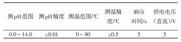 本系统运用BHT-D型的pH温度变送器,分别采集鱼塘中的pH值和温度。pH温度变送器采用双高阻三电极体系,具有在线一键校准、实时温度补偿、电极松断报警、校准时电极好坏报警、掉电保护(可使标定结果和预置数据不因关机或停电而丢失)、测量精度高、响应快、使用寿命长等特点。采集器对水的pH值和温度不会有影响,在测量的过程中只需要浸泡在水中即可。通过测试,采集的数据误差非常小,在测量允许误差范围内。采集器会每隔500ms给处理器发送实时数据,从而提高数据的可靠性,在指标不合格时能及时恢复指标。DHT-D型pH、温度模块技术参数如表2所示。