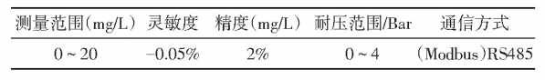 本系统选用瑞蒙德智慧型数字溶解氧传感器,它采用电极RS485通信接口,支持Modbus通信协议,自带温度补偿功能,准确度高、抗干扰能力强,保证了系统的稳定性和可靠性。溶解氧传感器是基于Clark氧电极的工作原理而制作的,传感器由两个电极、电解质溶液以及特定材料的薄膜组成,这种薄膜只能渗透过氧分子,其他有机及无机溶质和水不能渗透过,从而大大提高了测量的准确度。该溶解氧传感器主要参数如表1所示。