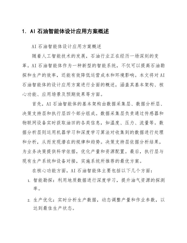 通过对适用范围及实施边界的清晰界定,AI石油智能体的设计与应用方案能够在合理的条件下进行有效部署,实现预期的经济和社会效益。