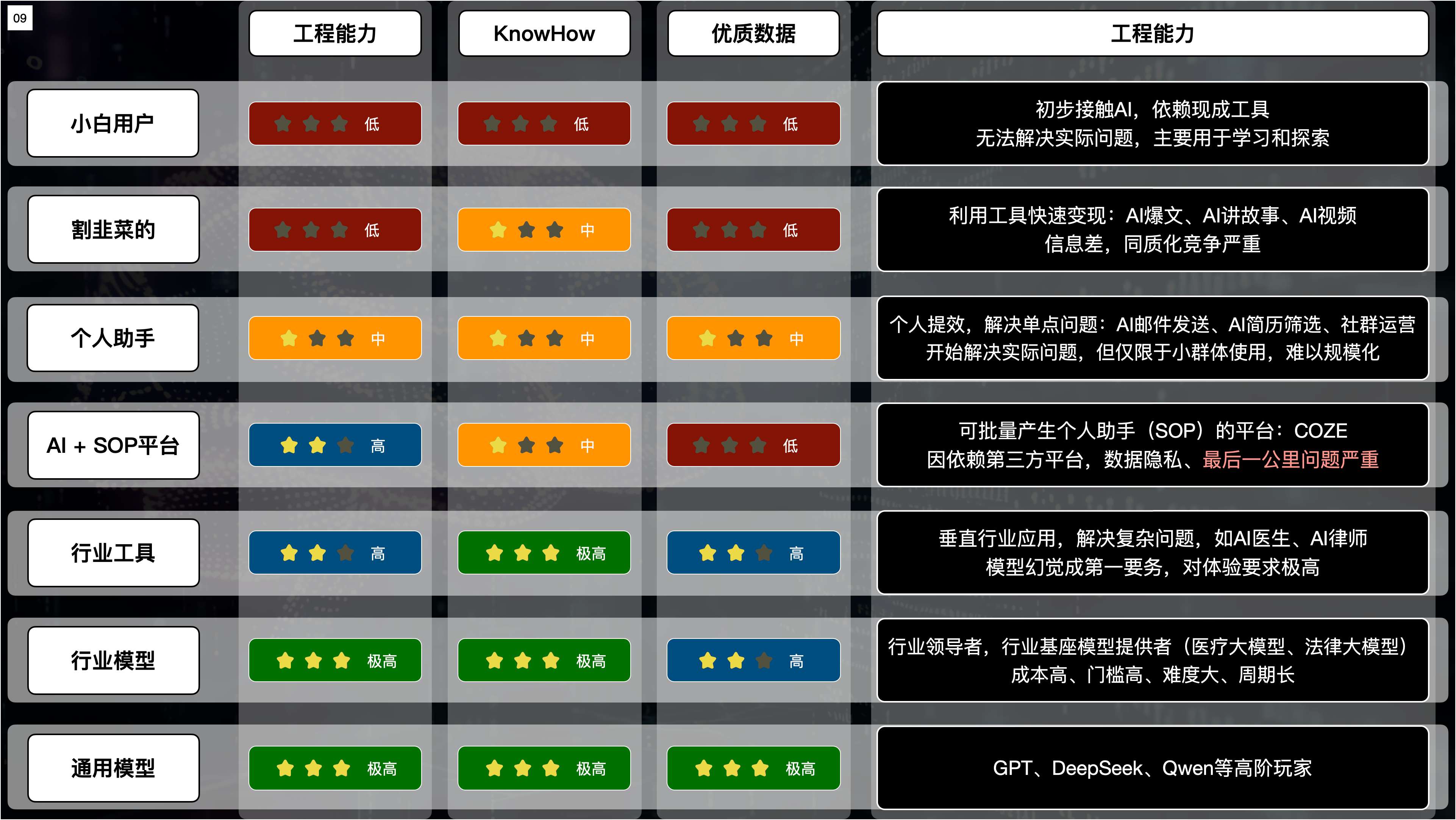 对于一般公司,其中模型边界与幻觉处理其实是工程能力的进一步衍生;而行业KnowHow毕竟是存在于大脑中的,要转换为AI友好的结构化优质数据需要大量的成本。