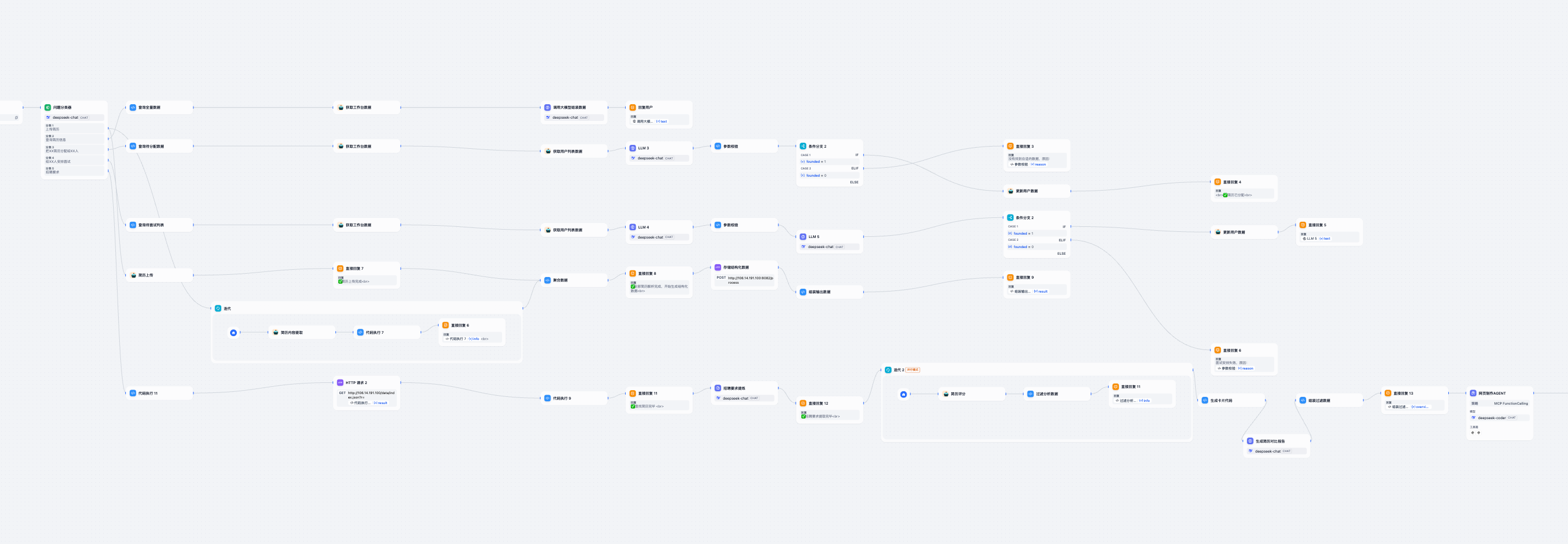 当前常见的Agent都已拖拽或者说编排为主,这里扣子与dify的体验非常类似,比如一个简单的HR体系: