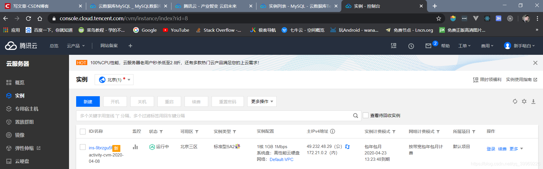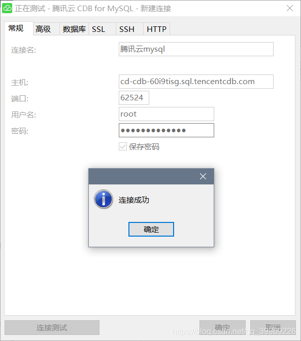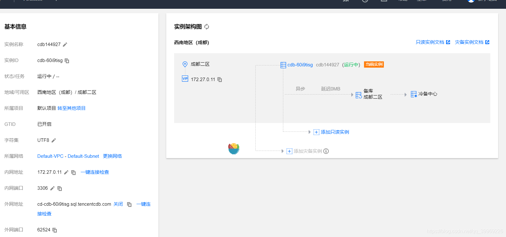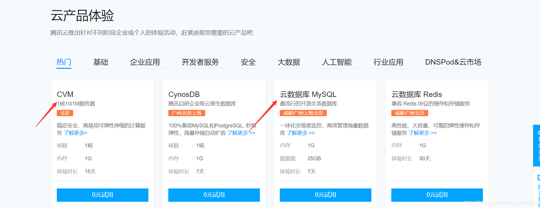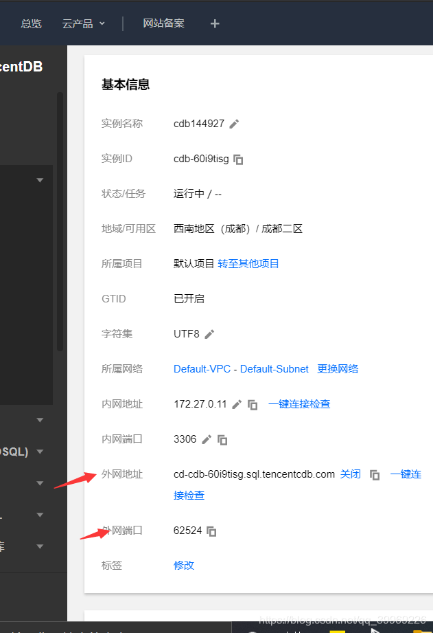 可以看到的是:我这里贴的都是腾讯云试用的服务器和mysql。